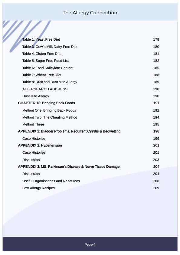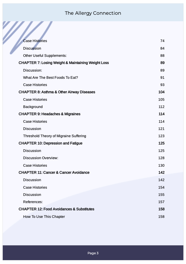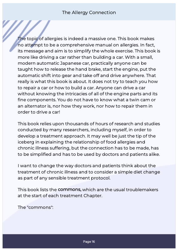 This book relies upon thousands of hours of research and studies, conducted by many researchers, including Dr. Samra in order to develop a successful treatment approach. It may well be tip of the iceberg in explaining the relationship of food, allergies and chronic illness suffering.
